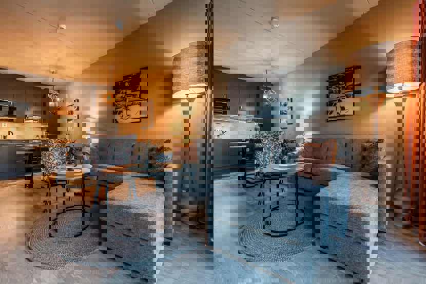 Midgard Trysil lejlighederne ligger i 2 eller 3 etagers huse og er designet til at være moderne lejligheder, men med inspiration hentet fra naturen og fjeldet. Gode varme farver som giver lejligheder hygge og varme, et perfekt sted at slappe af.
