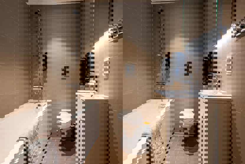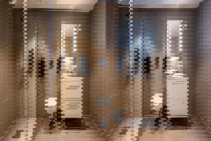 Badeværelser: Bad 1: Bruser og WC, badekar. Bad 2: Bruser, WC