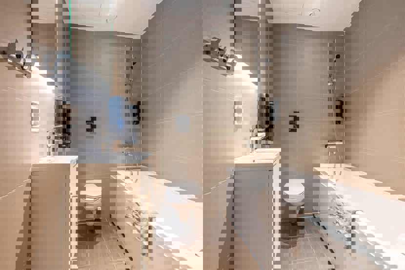 Badeværelser: Bad 1: Bruser og WC, badekar. Bad 2: Bruser, WC