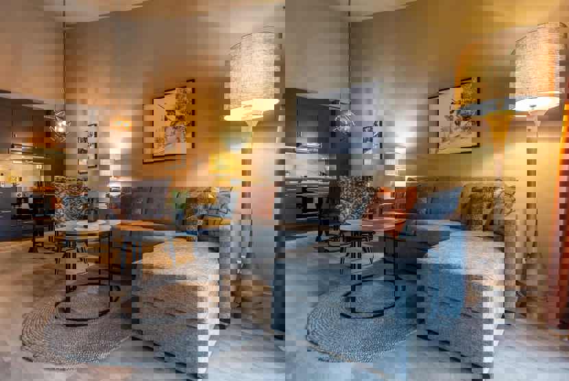 Midgard Trysil lejlighederne ligger i 2 eller 3 etagers huse og er designet til at være moderne lejligheder, men med inspiration hentet fra naturen og fjeldet. Gode varme farver som giver lejligheder hygge og varme, et perfekt sted at slappe af.