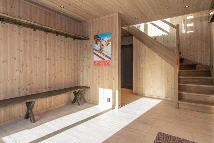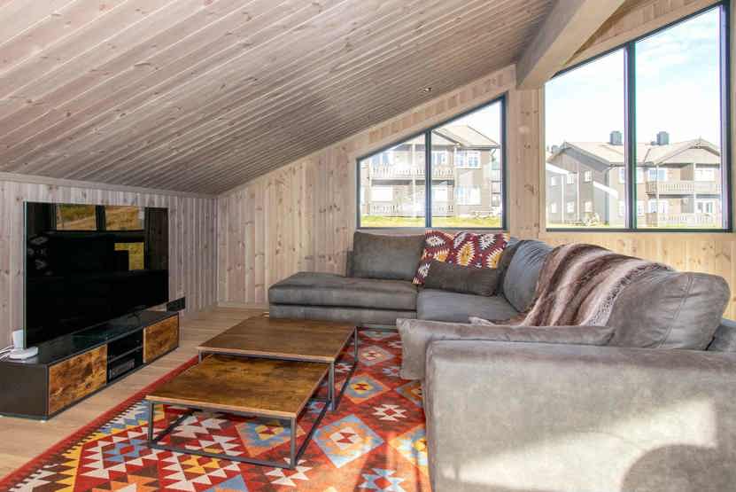Hytte på 2 sal, 10 sengepladser, 185 m², opholdsstue med pejs, TV og køkkenafdeling, 4 soveværelser, 3 brusere, 3 WC, 1 sauna. Vaskemaskine, tørretumbler, tørreskab, skotørrer. Skiopbevaring. 1 carport.