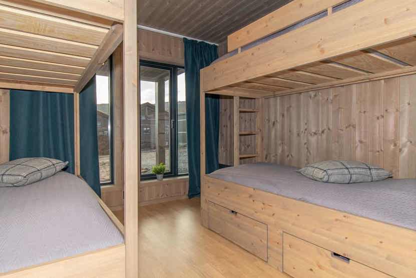 Soveværelse 1: 1 dobbeltseng 180 cm bred. Soveværelse 2: 1 dobbeltseng 180 cm bred. Soveværelse 3: 1 dobbeltseng 160 cm bred. Soveværelse 4: 2 køjesenge hvor både over og underkøje er 90 cm bred.