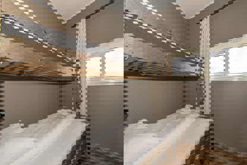 Soveværelse-1= 1 dobbeltseng. Soveværelse-2= 1 dobbeltseng, sovesofa. Soveværelse-3= 1 køjeseng med 120 cm bred underkøje. Soveværelse-4= 1 køjeseng med 120 cm bred underkøje.