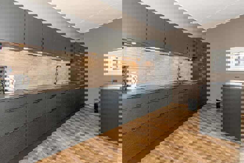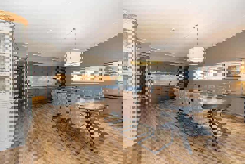 Enheden har komfur, ovn, opvaskemaskine, fryser, køleskab.