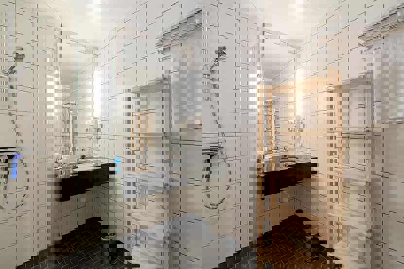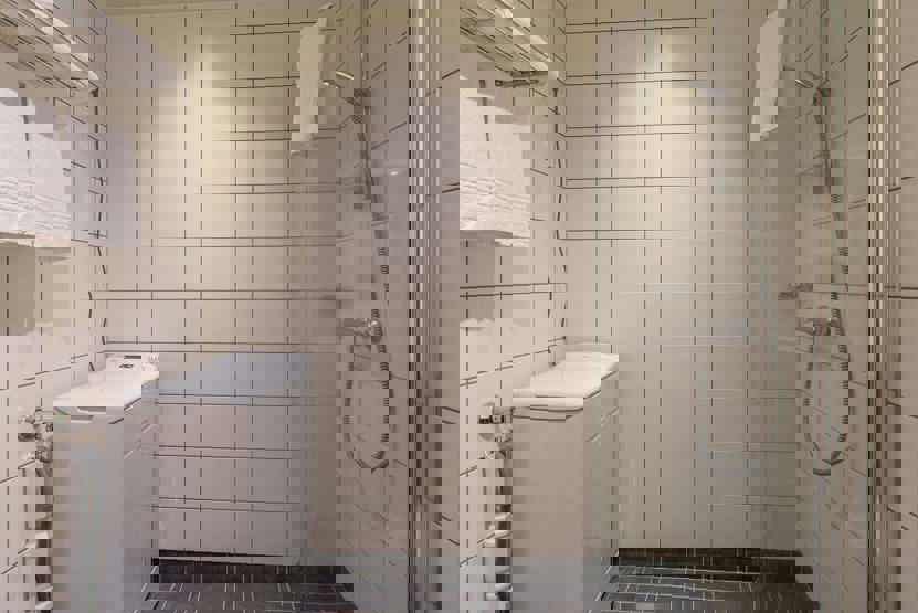 Bad 1 med bruser og WC. Bad 2 med bruser og WC.