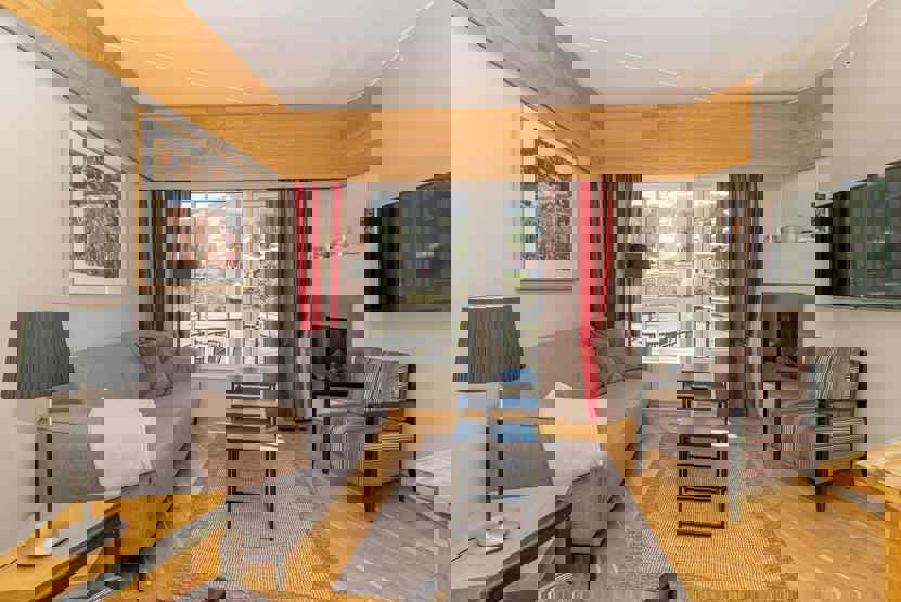 Radisson Blu Resort Prestige 63012, ligger ski in / Ski out ved Turistsenteret. Hotellejlighed med høj standard Lejlighed på 5. sal, 6 sengepladser, 74 m², opholdsstue med gaspejs, TV og køkkenafdeling, 2 soveværelser, 2 brusere, 2 WC, Elevator findes i huset, Adgang til elbilopladere med type 2 stik mod betaling.