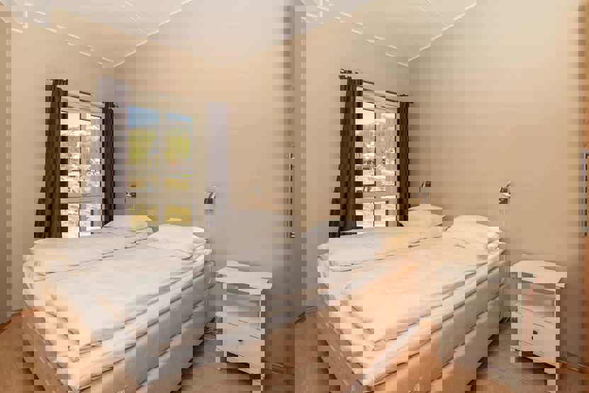 Soveværelse-1= 1 dobbeltseng, 1 køjeseng. Soveværelse-2= 1 dobbeltseng.