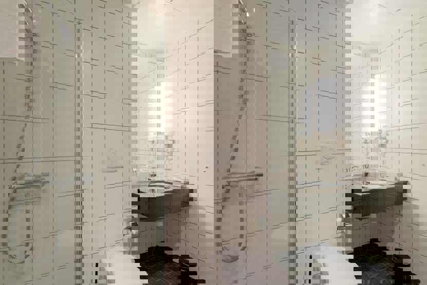 Bad 1 med bruser og WC. Bad 2 med bruser og WC.