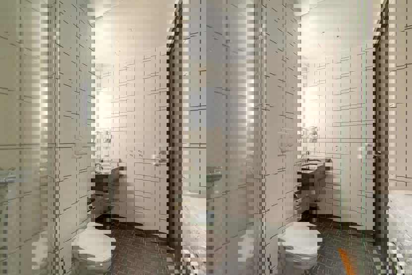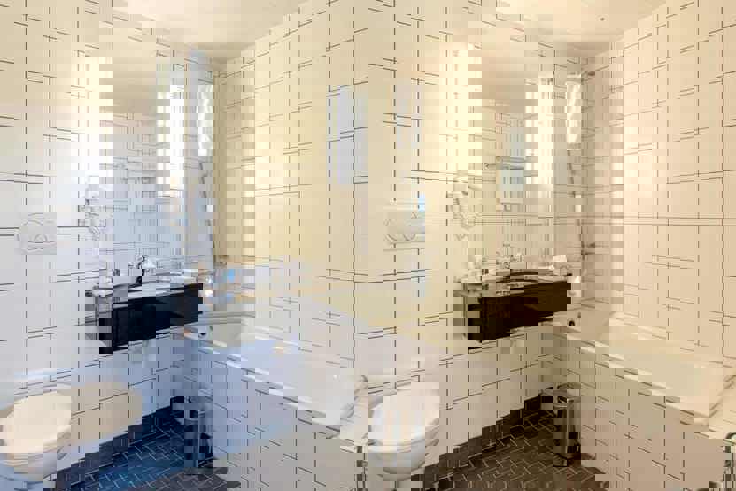 Bad 1 med bruser, WC og badekar. Bad 2 med bruser og WC.