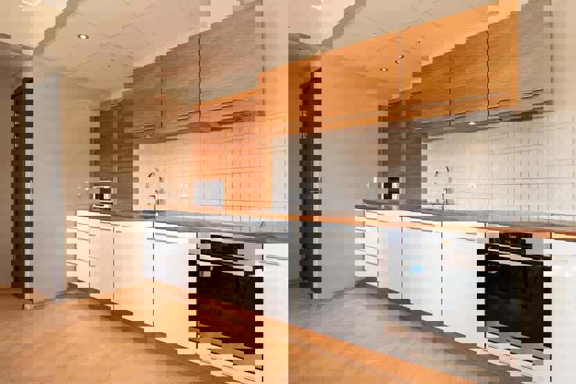 Enheden har komfur med ovn, opvaskemaskine, fryser, mikrobølgeovn.