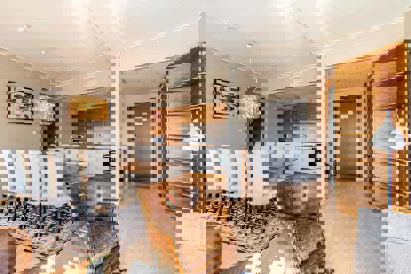 Radisson Blu Resort Prestige 7007, ligger ski in / Ski out ved Turistsenteret. Hotellejlighed med høj standard Lejlighed på 6. sal, 4 sengepladser, 75 m², opholdsstue med gaspejs, TV og køkkenafdeling, 2 soveværelser, 2 brusere, 2 WC, vaskemaskine. Elevator findes i huset, Adgang til elbilopladere med type 2 stik mod betaling.