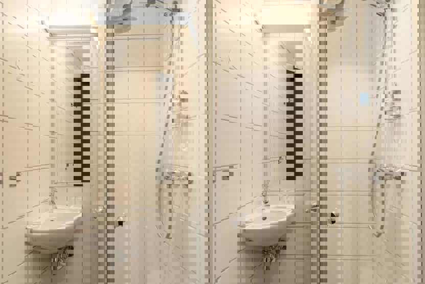 Bad 1 med bruser og WC. Bad 2 med bruser og WC.