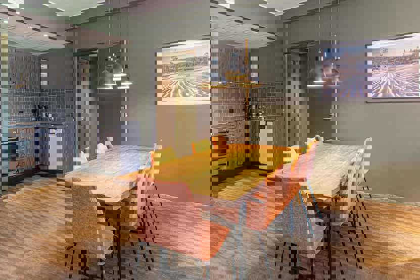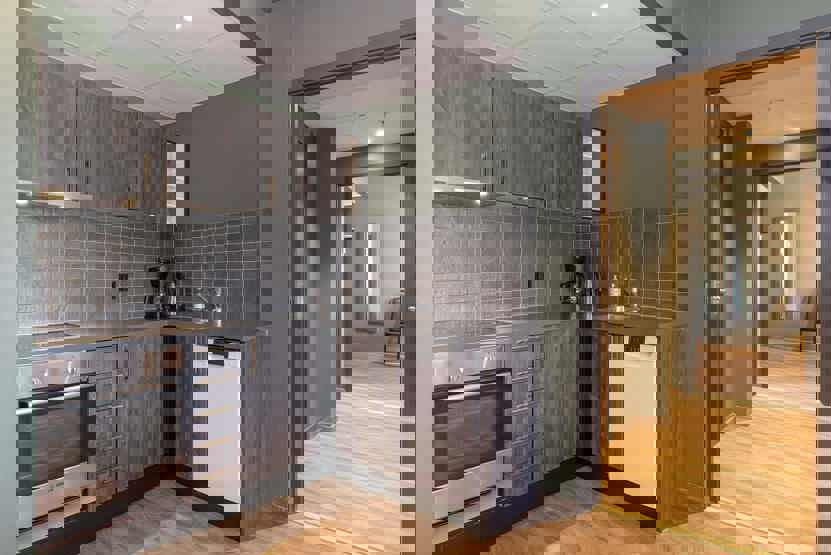 Enheden har komfur, ovn, køleskab, opvaskemaskine.