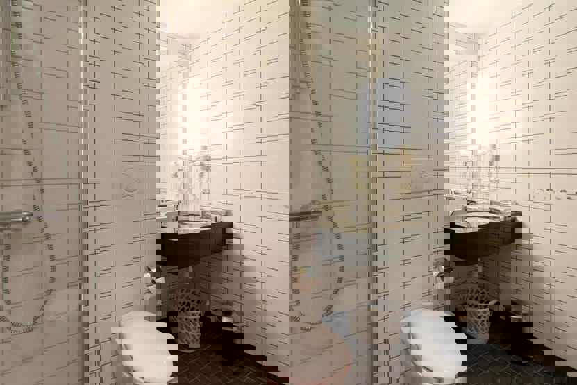 Bad 1 med bruser og WC. Bad 2 med bruser og WC.