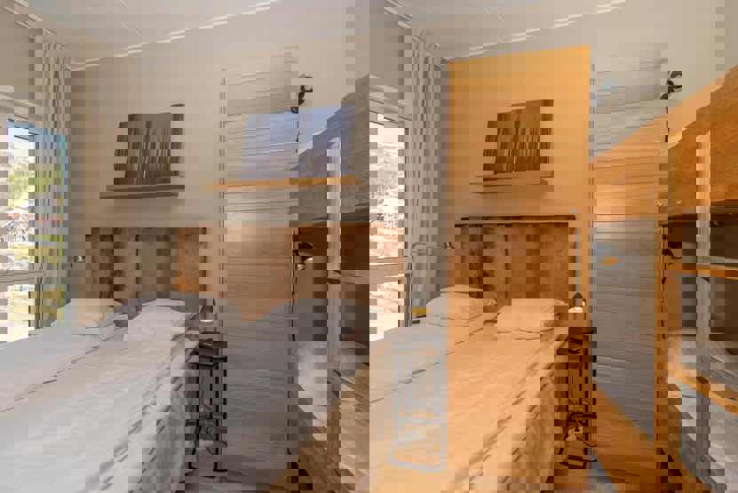 Soveværelse-1= 1 dobbeltseng. Soveværelse-2= 2 enkeltsenge 120 cm bred. Soveværelse-3= 1 dobbeltseng, 1 køjeseng 170cm lang.