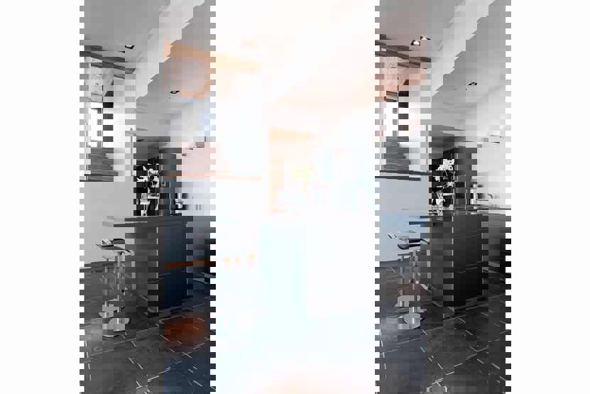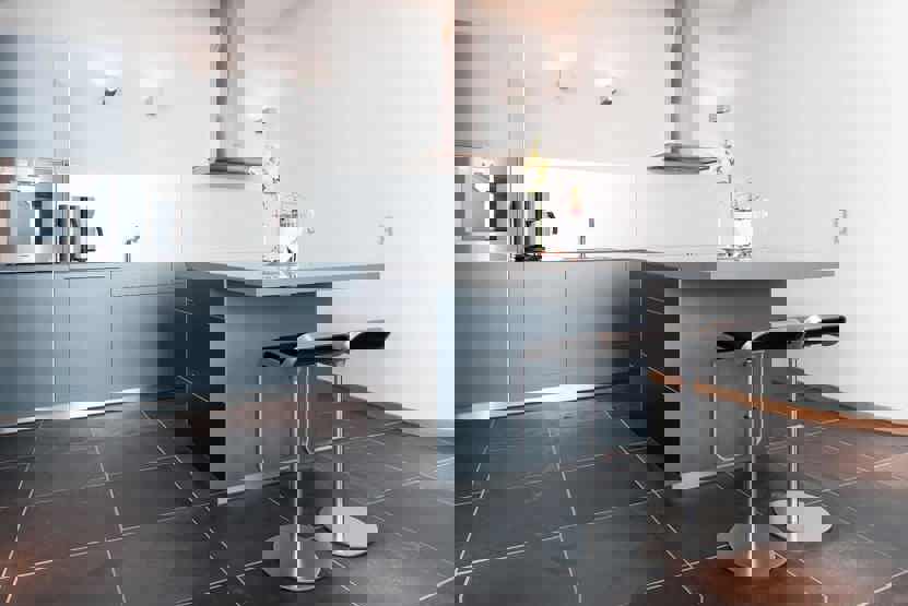 Enheden har komfur, ovn, opvaskemaskine.