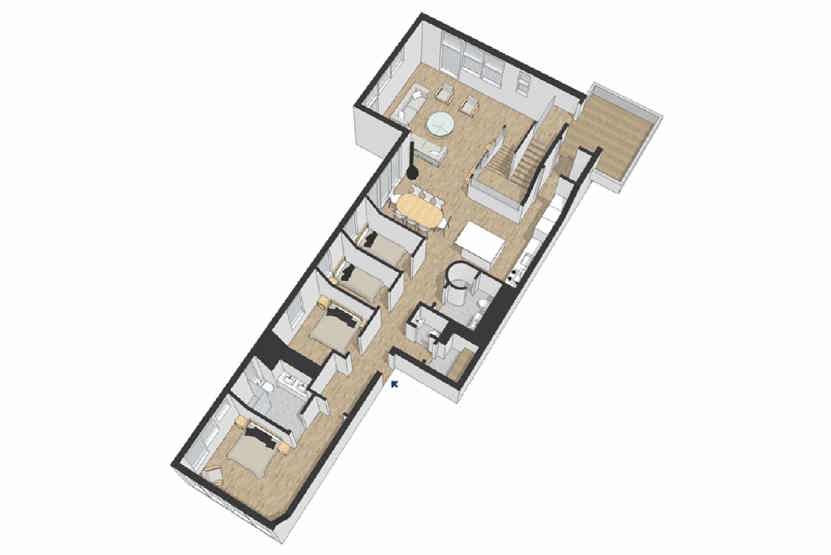 Soveværelse-1= 1 dobbeltseng. Soveværelse-2= 1 dobbeltseng. Soveværelse-3= 1 køjeseng med 120 cm bred underkøje. Soveværelse-4= 1 køjeseng med 120 cm bred underkøje.