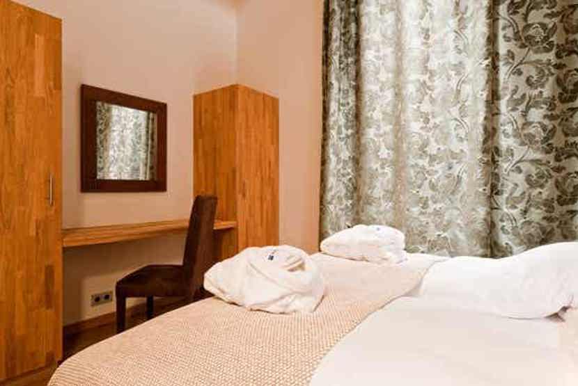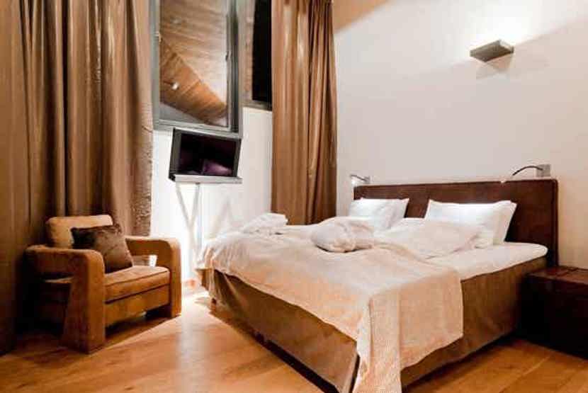 Fra skirummet er der direkte udgang til pisten. 1. klasses betjening i super lækre rammer. Eventyrbad med SPA afdeling med finsk sauna og tyrkisk dampbad mod betaling, Klatrevæg i glas m.m., 6 restauranter og barer, 8 bowlingbaner.