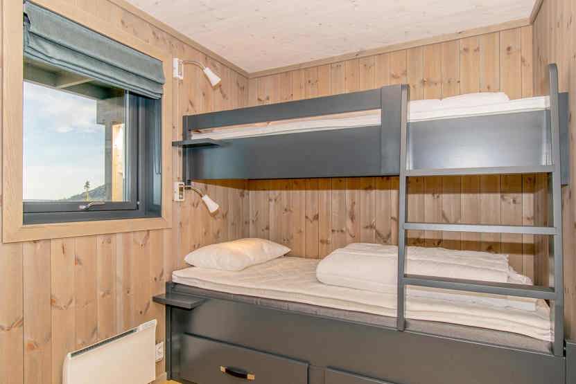 Soveværelse 4: 1 køjeseng med 90 cm bred underkøje og 75 cm bred overkøje.