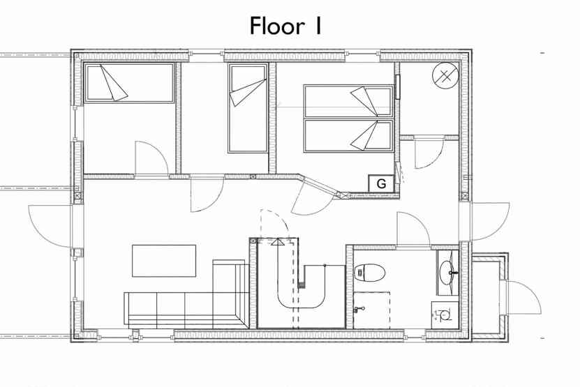 Soveværelse 3: 1 køjeseng med 90 cm bred underkøje og 75 cm bred overkøje.