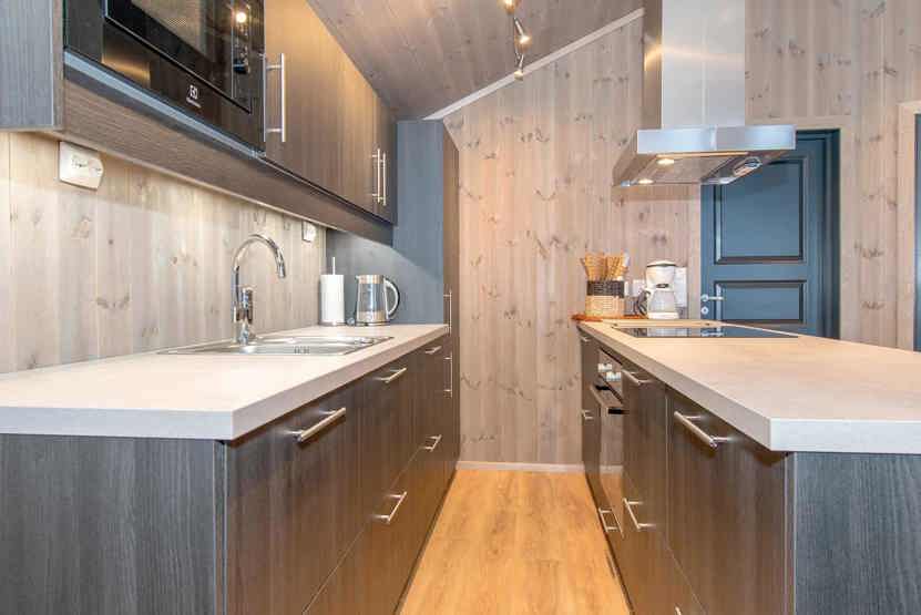 Enheden har komfur med ovn, opvaskemaskine, mikrobølgeovn, køleskab, fryser.