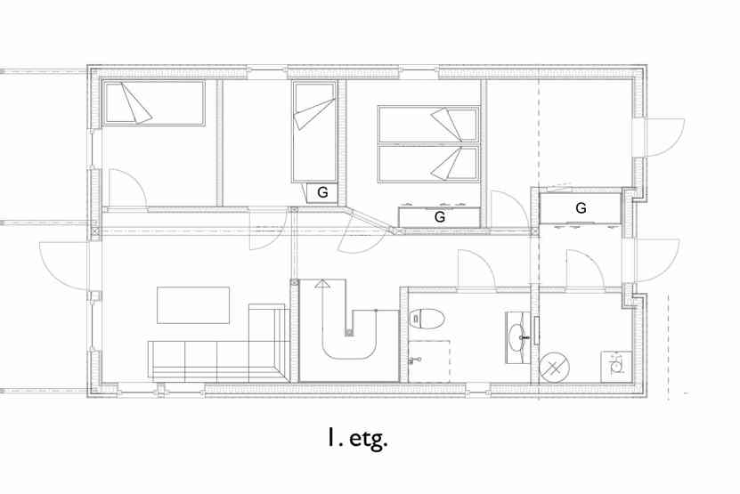 Soveværelse 3: 1 køjeseng med 90 cm bred underkøje og 75 cm bred overkøje.