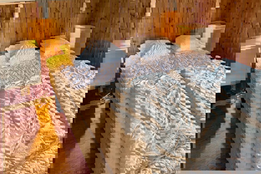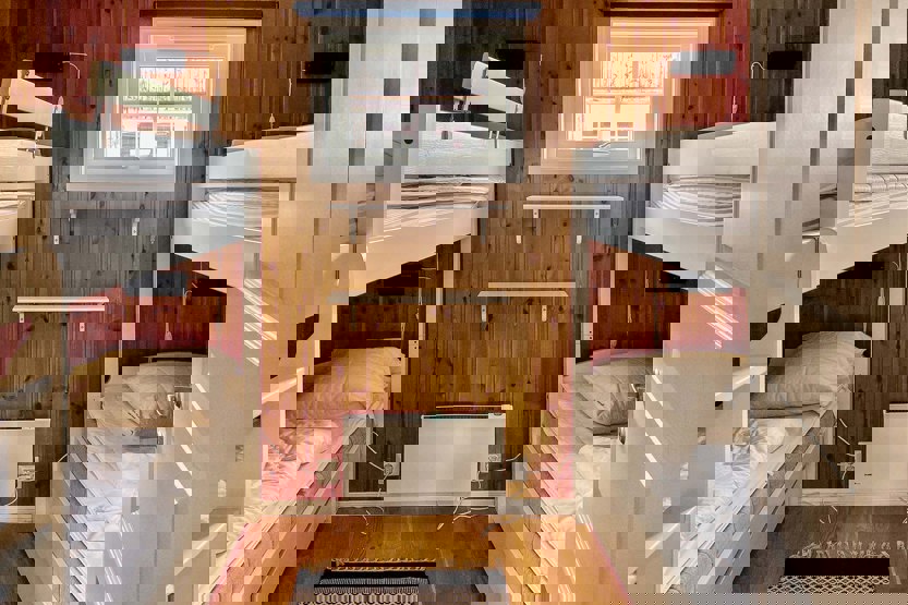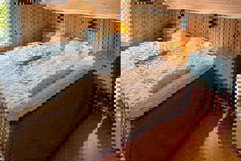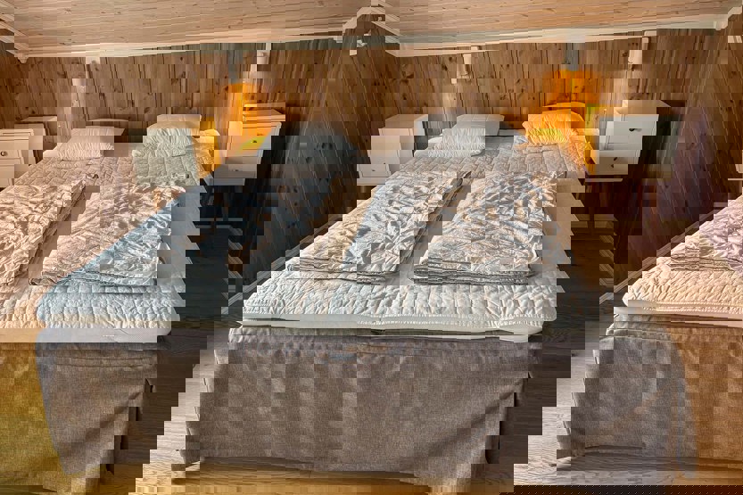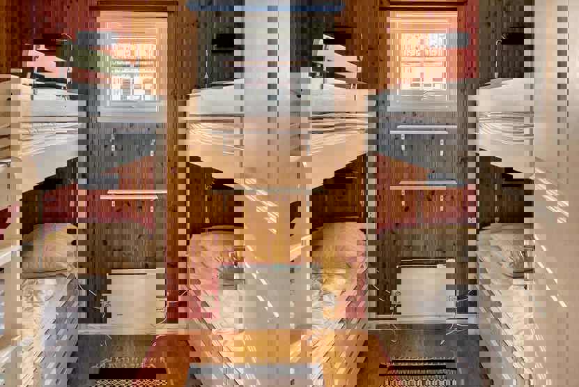 Soveværelse 1: 1 køjeseng 75 cm bred, 1 køjeseng 95 cm bred. Soveværelse 2: 1 dobbeltseng 180 cm bred. Soveværelse 3: 1 dobbeltseng 160 cm bred. Soveværelse 4: 1 dobbeltseng 150 cm bred.