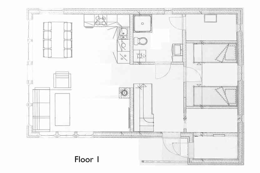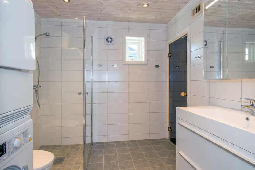 Bad 1: Bruser, WC og sauna. Bad 2: Bruser og WC.