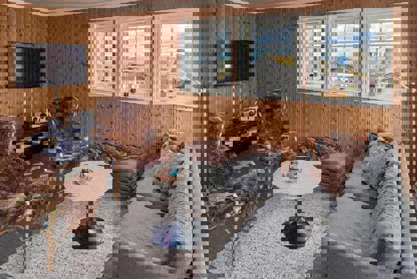 Ekstra info: Opholdsstue med TV, pejsindsats. Skiopbevaring, tørretumbler, vaskemaskine.