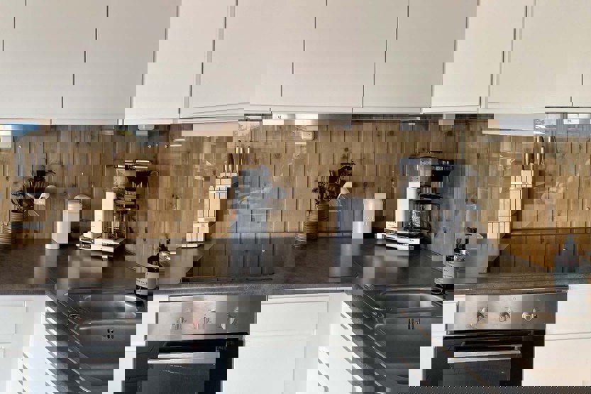 Enheden har komfur med ovn, opvaskemaskine, mikrobølgeovn, køleskab, fryser.