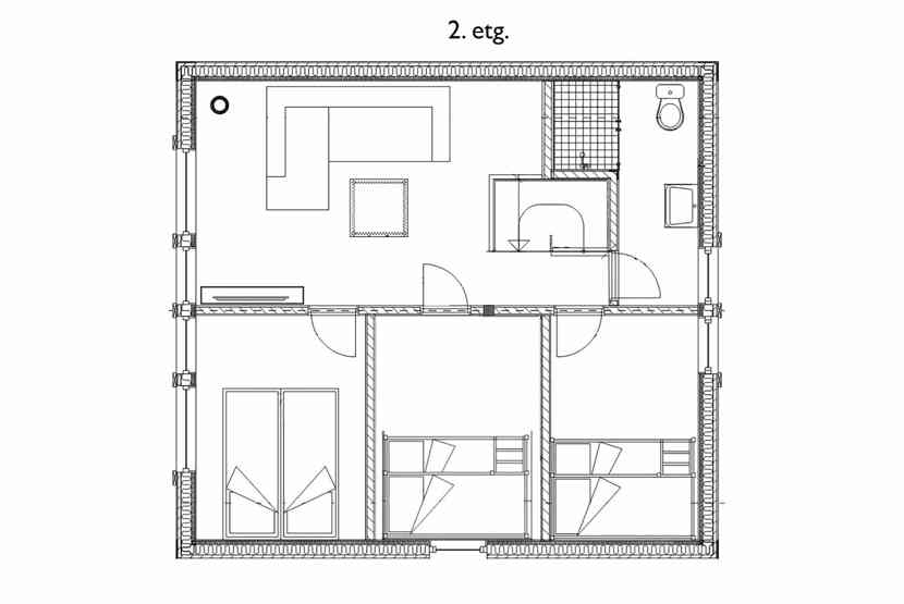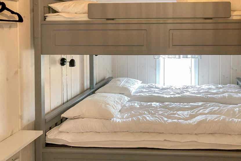 Soveværelse 3: 1 køjeseng med 150 cm bred underkøje og 90 cm bred overkøje.