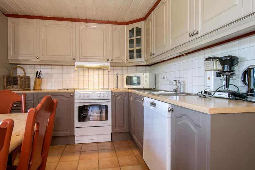 Køkken: Enheden har komfur med ovn, opvaskemaskine, mikrobølgeovn, køleskab, fryser.