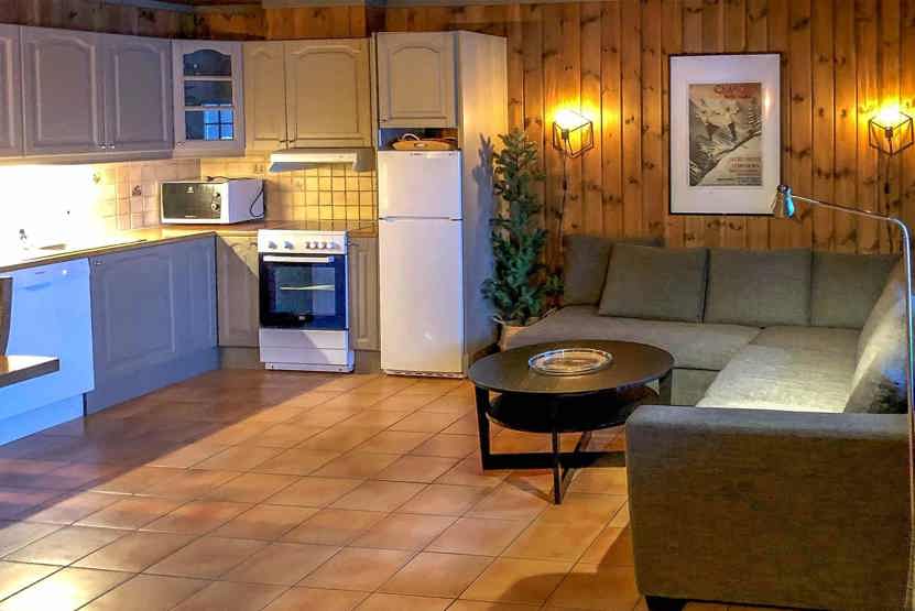 Lejlighed i underetage, 6+2 sengepladser, 70 m², Kombineret opholdsstue med køkkenafdeling med brændeovn, TV, 3 soveværelser, 1 bruser, 1 WC, 1 sauna, vaskemaskine