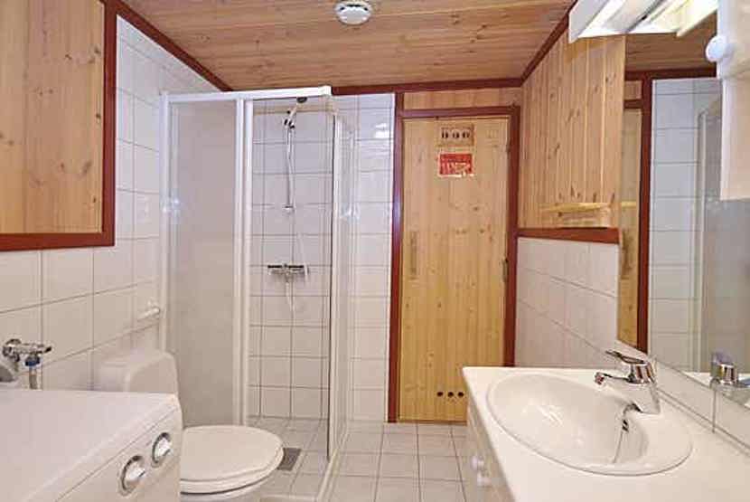 Badeværelser: Bad 1: Bruser, WC og sauna
