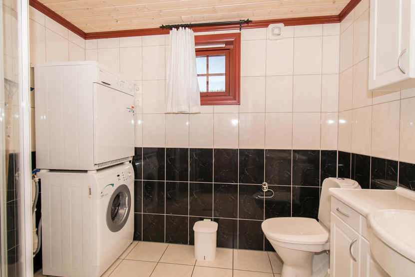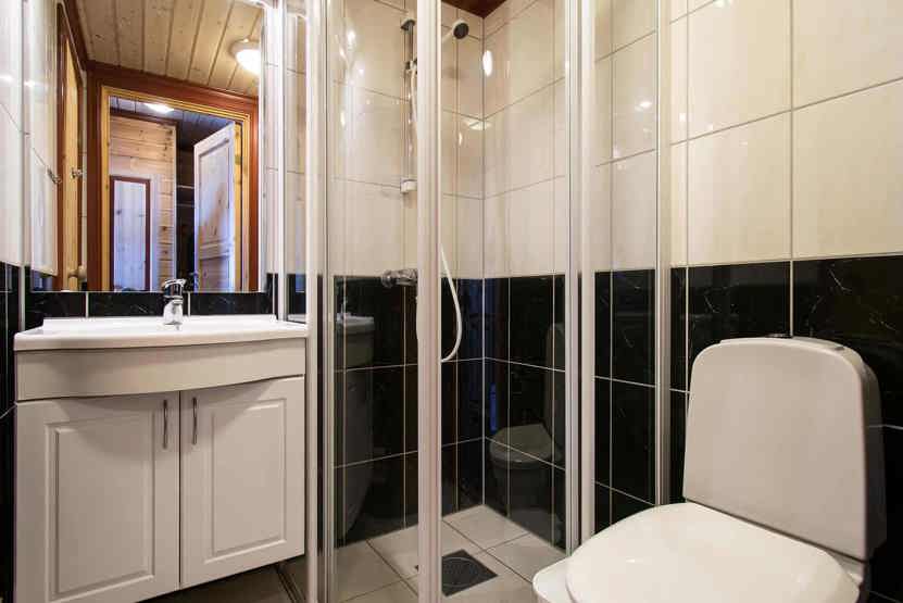 Bad 1: Bruser og WC. Bad 2: Bruser, WC og sauna.