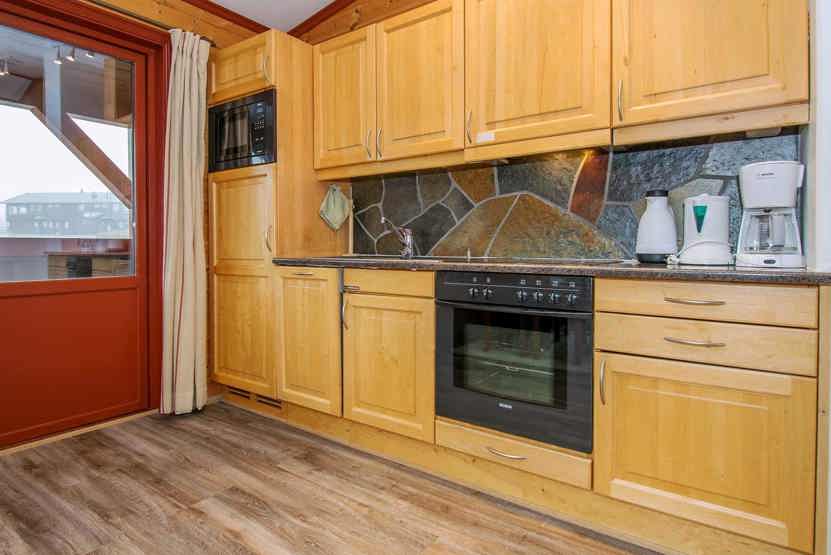 Enheden har komfur med ovn, opvaskemaskine, mikrobølgeovn, køleskab.