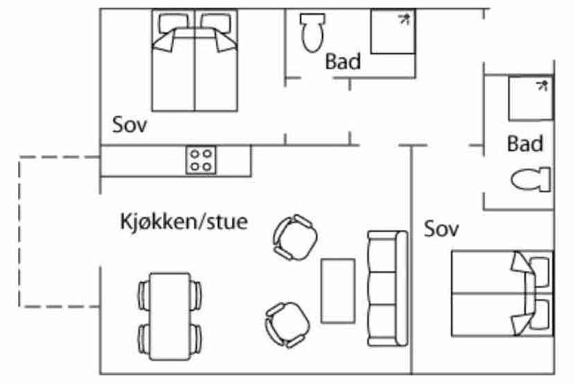 Soveværelse 1: 1 dobbeltseng. Soveværelse 2: 1 dobbeltseng.