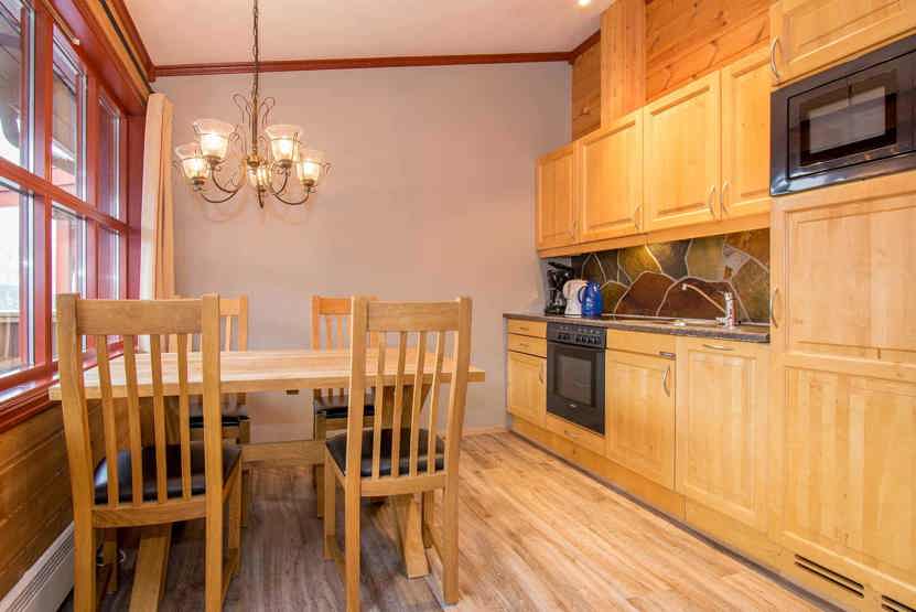 Enheden har komfur med ovn, opvaskemaskine, mikrobølgeovn, køleskab.