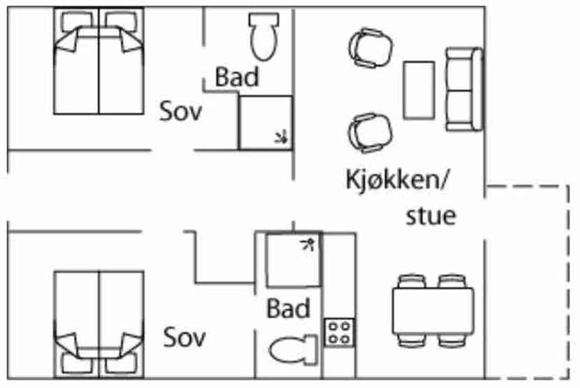 Soveværelse 1: 1 dobbeltseng. Soveværelse 2: 1 dobbeltseng.