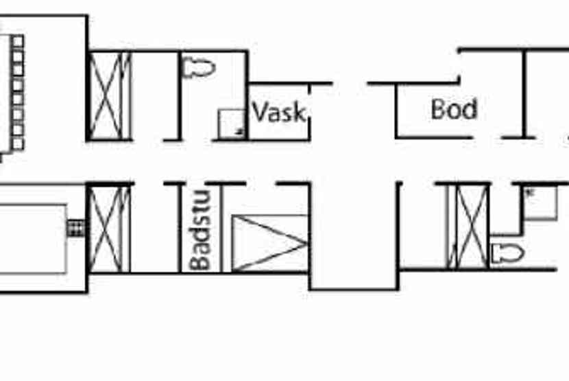 Bad 1: bruser og WC. Bad 2: bruser, WC og sauna.