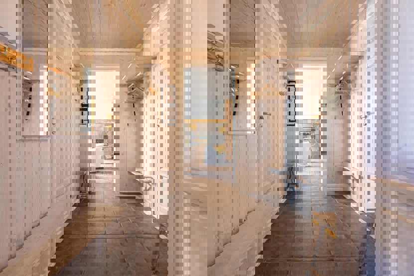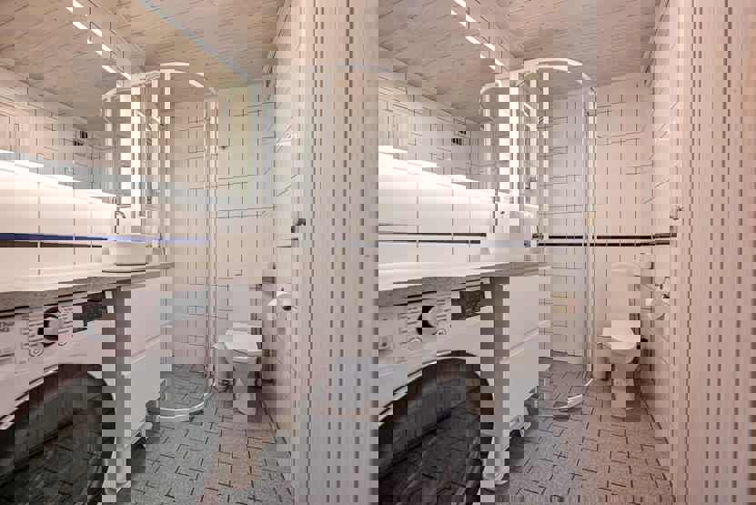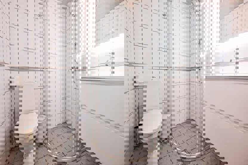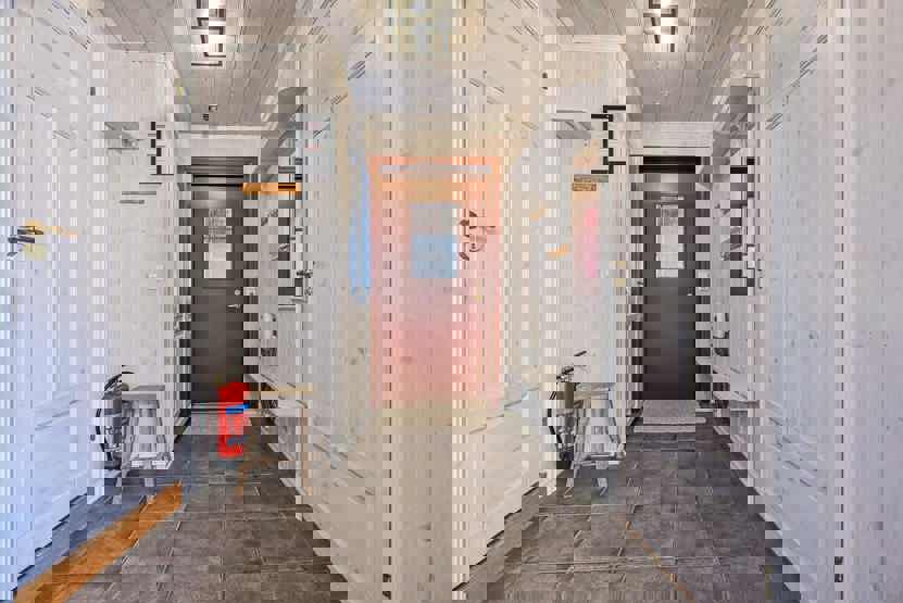 Bad 1: Bruser og WC. Bad 2: Bruser, WC og sauna.
