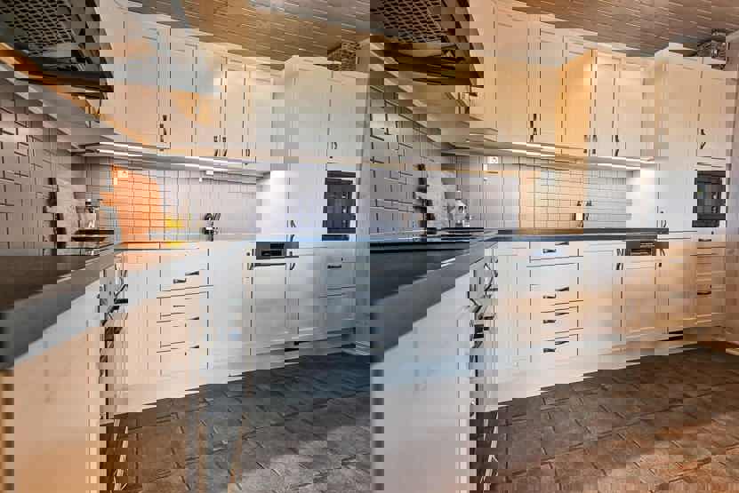 Enheden har komfur med ovn, pvaskemaskine, mikrobølgeovn, køleskab, fryser.