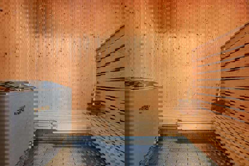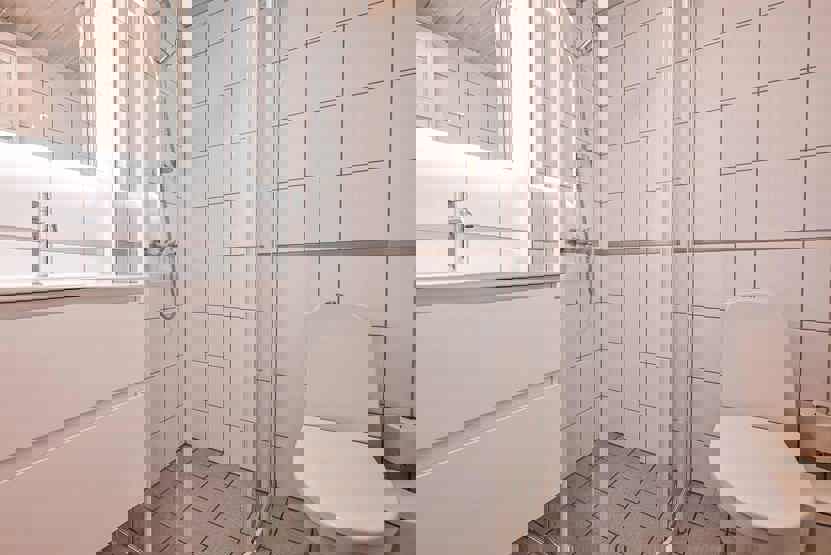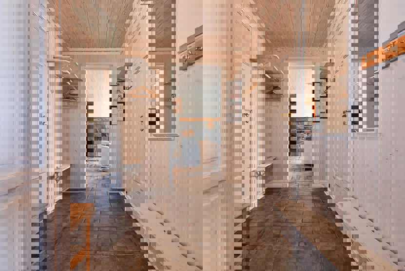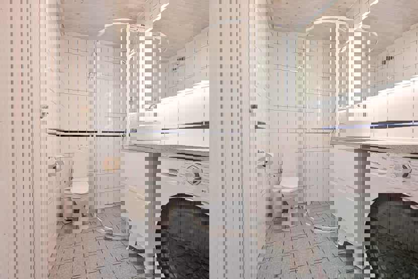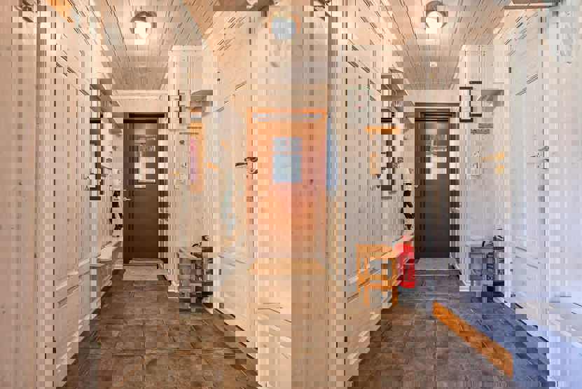 Bad 1: Bruser og WC. Bad 2: Bruser, WC og sauna.