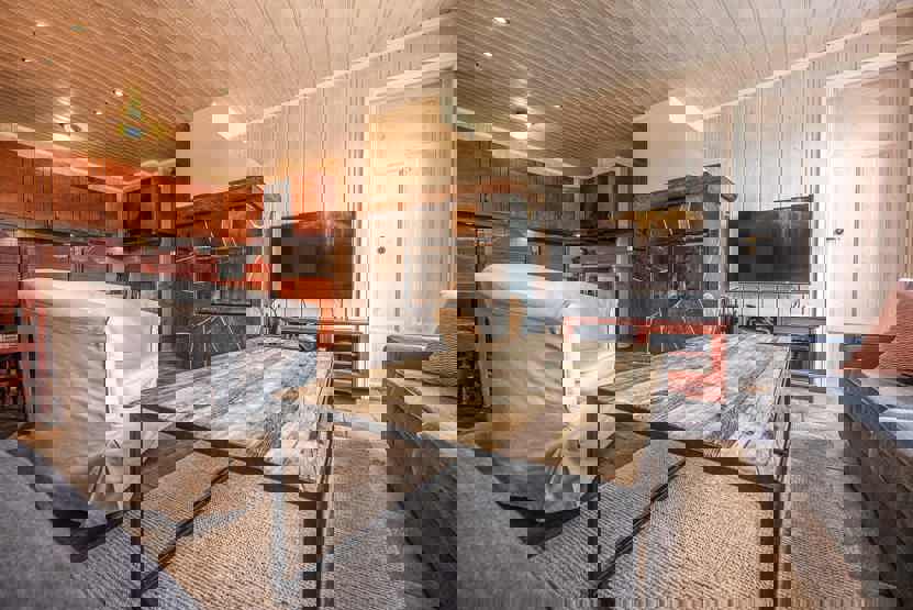 Ekstra info: Opholdsstue med TV, pejsindstats. Vaskemaskine, skiopbevaring, 1 skotørrer, tørremulighed: (skab med varmeovn). Adgang til fri Wi-Fi (med forbehold for eventuelle forstyrrelser hos bredbåndsleverandøren).