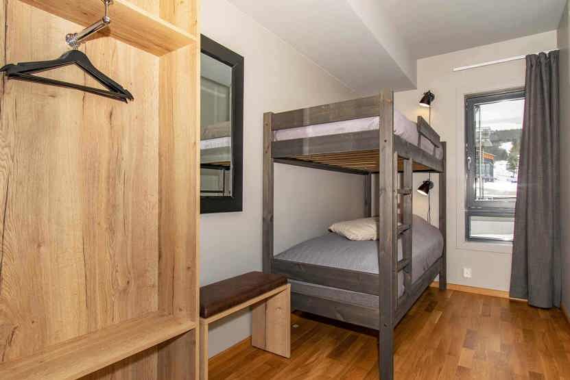 Soveværelse-1= 1 dobbeltseng 160 cm bred. Soveværelse-2= 1 køjeseng 80 cm bred.