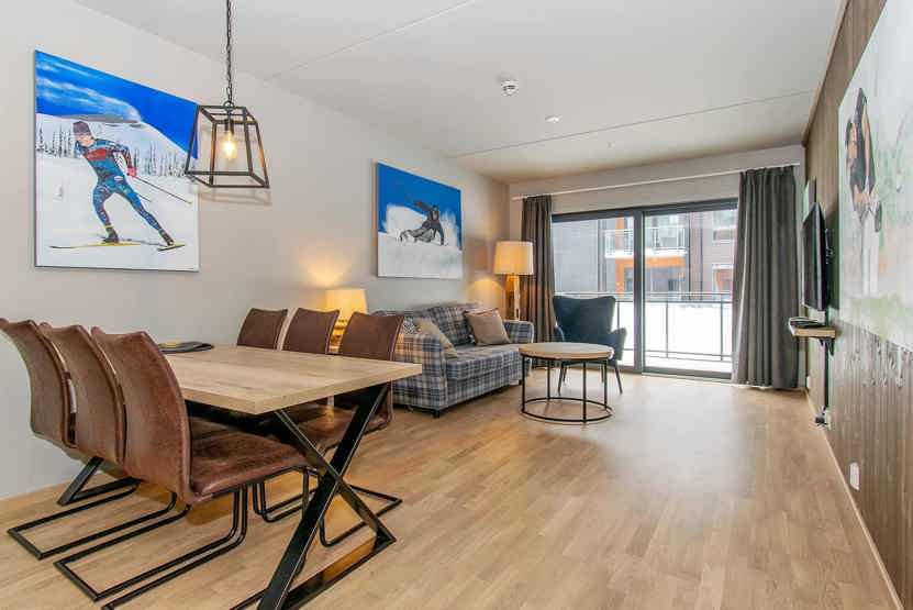 The Lodge Trysil, ligger lige i smørhullet i Turistsenteret med Radisson Blu Resort Hotel som nærmeste nabo. På hotel Radisson er der stort oplevelsesbad, restauranter bar og for børnene er der legerum, 150 meter til Trysils stor udbud af lifte, piste, butikker, restauranter og skiskole.