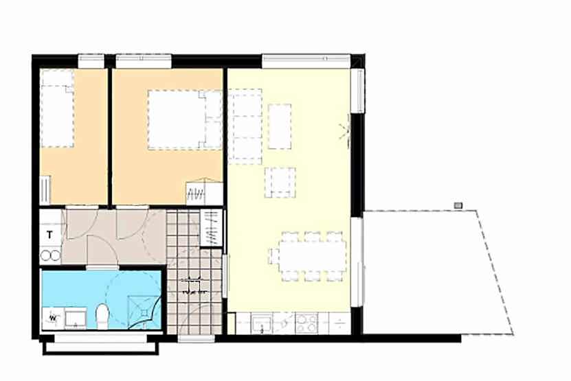 Soveværelse 1: 1 dobbeltseng 160 cm bred. Soveværelse 2: 1 køjeseng 80 cm bred.