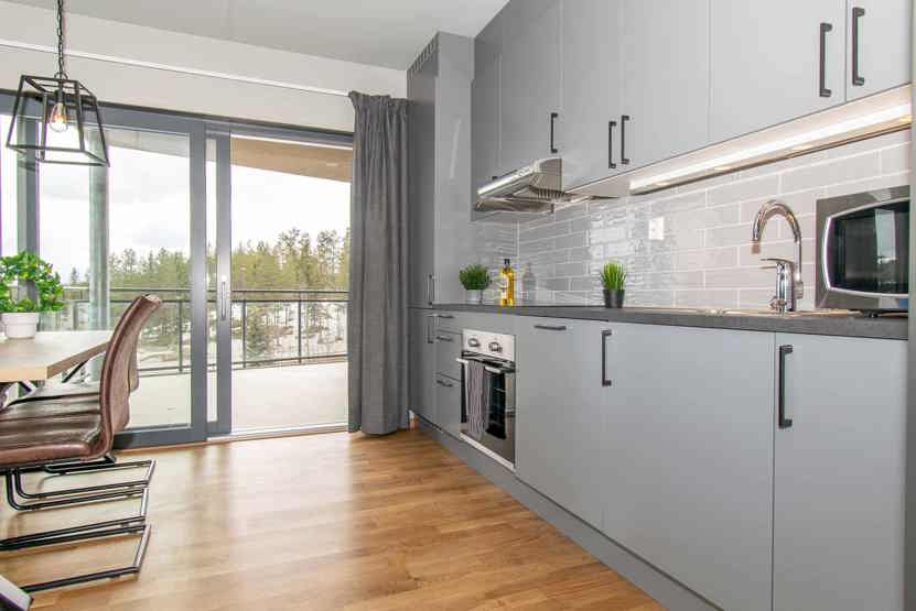 Lys og moderne lejlighed på 3. sal. Kombineret opholdsstue, TV og sovesofa. køkkenafdeling: 2 soveværelser, 1 brusere, 1 WC, 1 skotørrer, 1 P-plads i garage til 1 bil (max højde 2,10m) elevator findes i bygning. Skiskab findes i byg A.