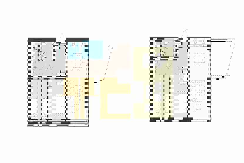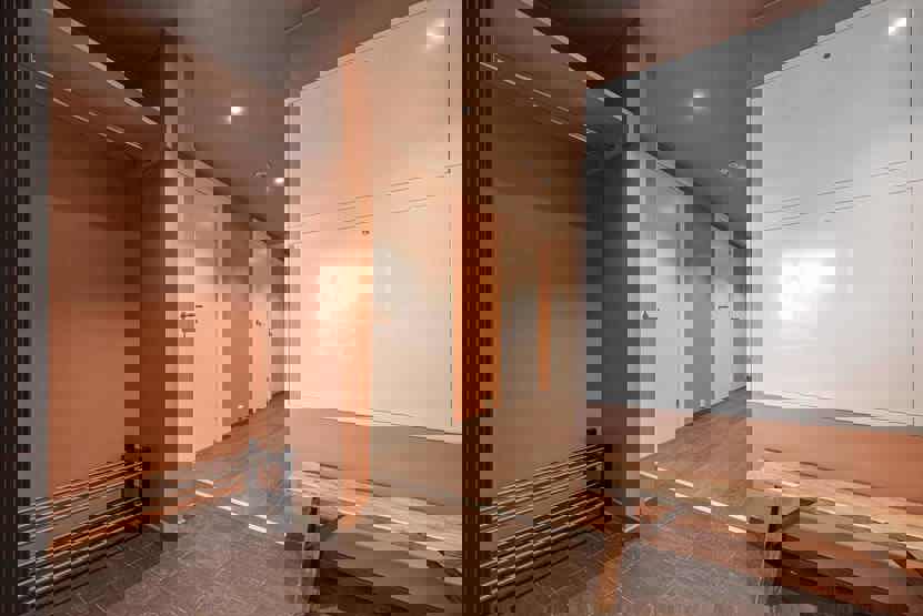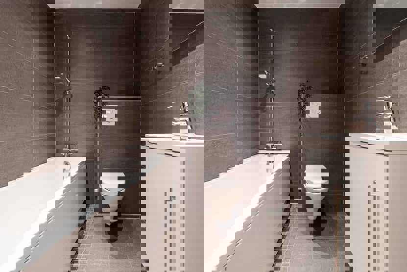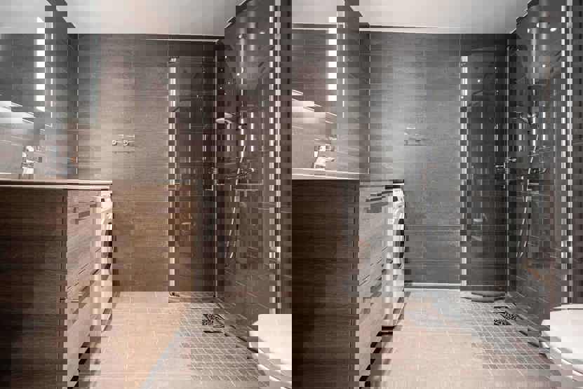 Bad 1 med bruser og WC. Bad 2 med bruser, WC og badekar.