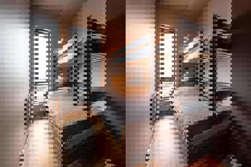 Soveværelse-1= 1 dobbeltseng 180 cm bred. Soveværelse-2= 1 køjeseng med 120 cm bred underkøje og 90 cm bred overkøje. Soveværelse-3= 1 køjeseng med 120 cm bred underkøje og 90 cm bred overkøje.